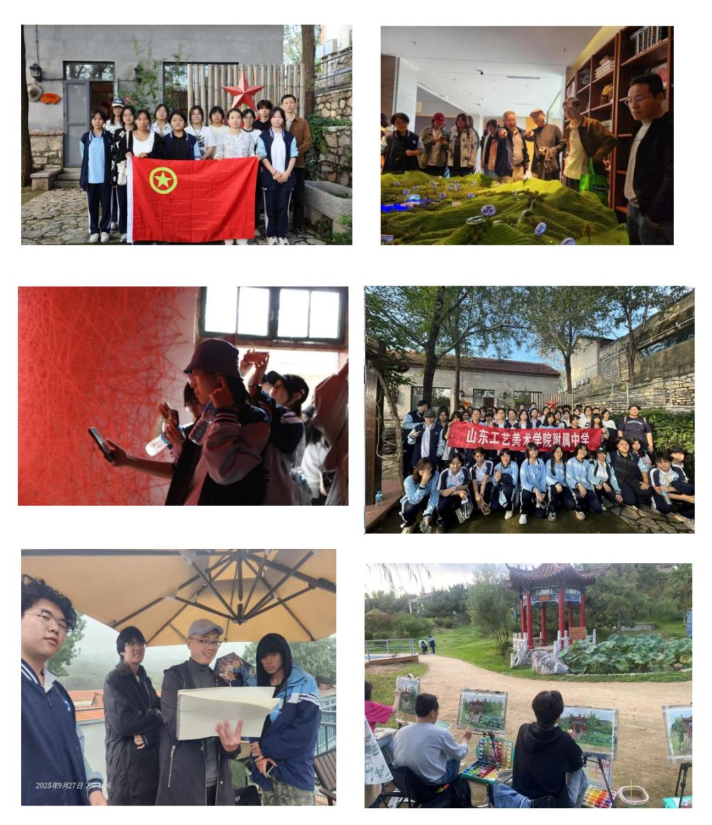 为深化艺术实践教学、推动“艺术赋能乡村”理念落地,9月24日,山东工艺美术学院附属中等美术学校(以下简称“附中”)组织学生赴山东沂河源田园综合体,开展主题写生学习活动。此次研学不仅是附中实践育人体系的重要延伸,更将红色基因教育与艺术创作深度融合,用青春画笔描绘乡村脉动,赓续红色薪火。