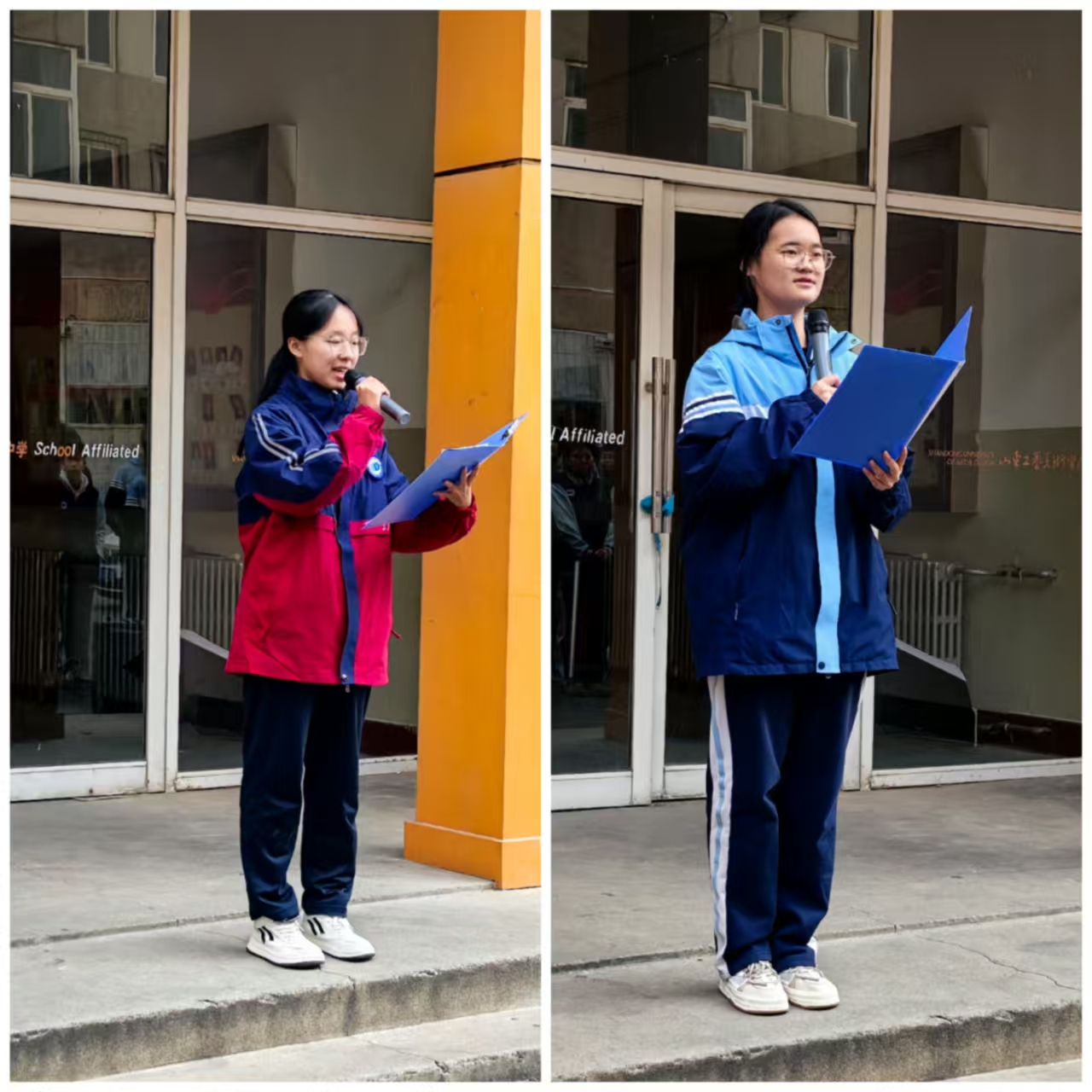 11月3日上午,附中在教学楼前举行“我与附中共成长”主题演讲活动第二十期。本次活动以“以爱为笔,绘就爱国的青春画卷”为主题,高一年级任奕霏同学主持,附中全体师生共同参与。