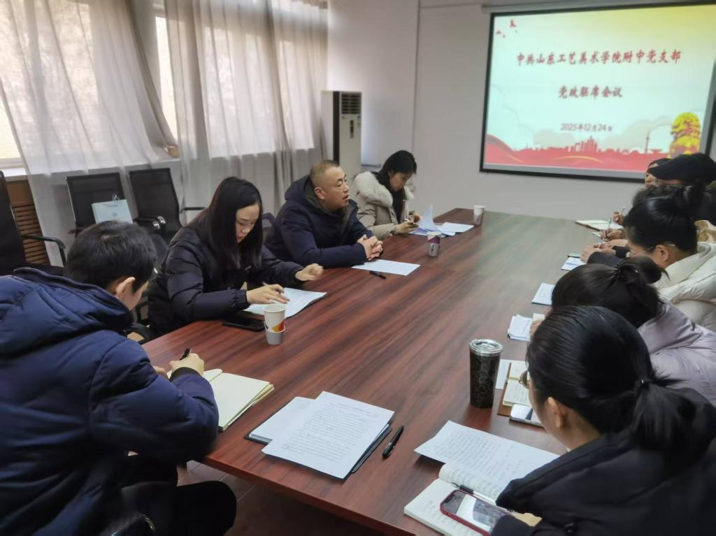 附中党支部副书记尚慧汇报了附中2025年职称评定工作;2025年团员发展结果;附中2025年文化艺术节活动方案及颁奖项目。附中专业课教研室主任谷强汇报了附中2025年专业课教学成果。附中教务负责人、文化课教研室主任李梦雪汇报了2025年教师获奖情况。