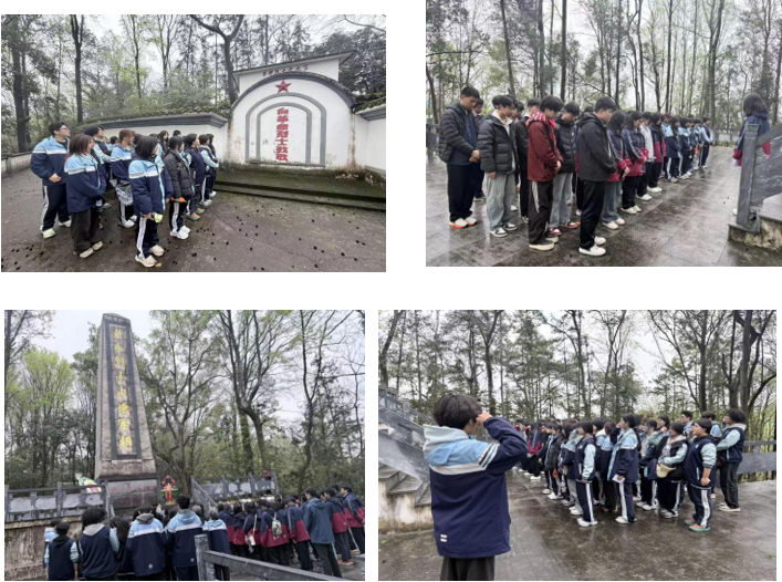 此行正逢清明节前夕,师生们怀着无比崇敬的心情前往婺源烈士陵园进行祭扫、宣誓活动。烈士陵园松柏苍翠,丰碑巍峨,静谧的氛围承载着对革命先烈的深切缅怀。师生整齐列队,敬献花篮,默哀致敬,共同追忆先烈事迹。